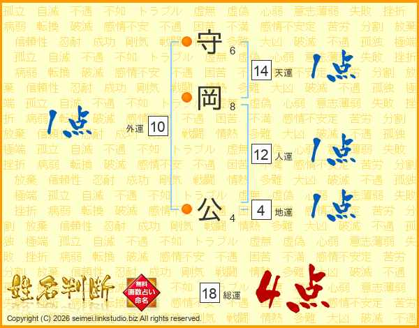 守岡公さんの総運は18画の4点!