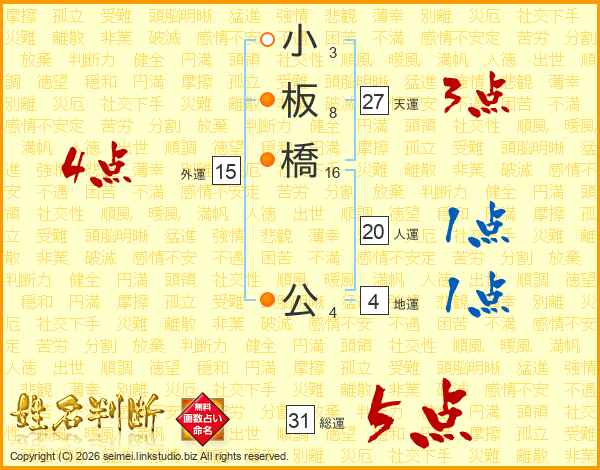 小板橋公さんの総運は31画の5点!