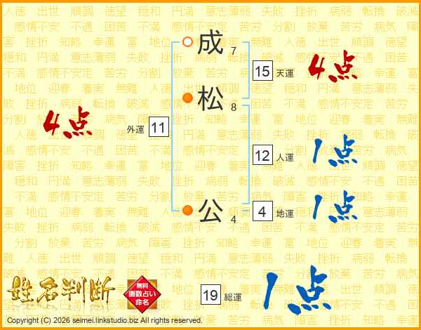 成松公さんの天運は15画の4点!