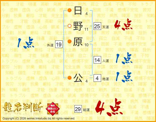 日野原公さんの総運は29画の4点!