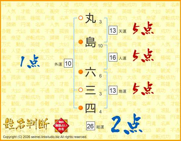 丸島六三四さんの総運は26画の2点!