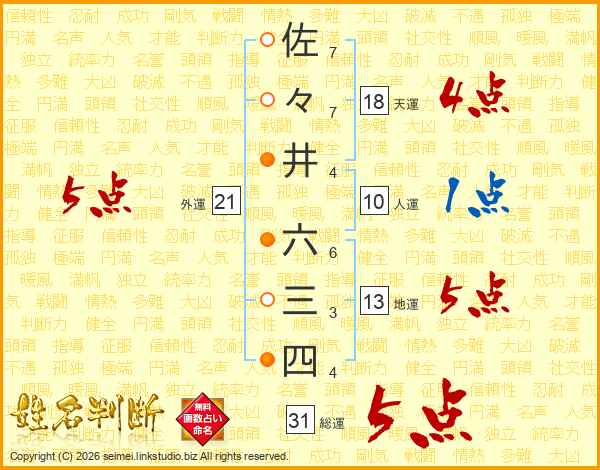 佐(7画)々(7画)井(4画) 六(6画)三(3画)四(4画)