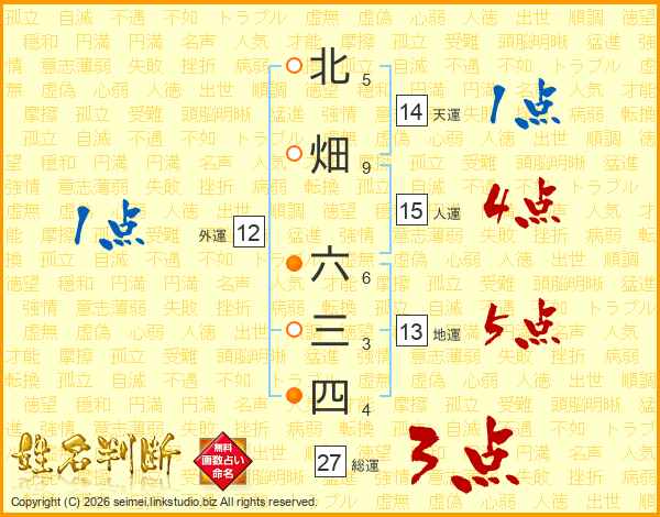 北(5画)畑(9画) 六(6画)三(3画)四(4画)