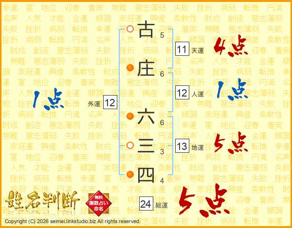 古庄六三四さんの総運は24画の5点!