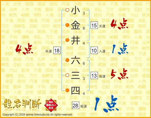 小(3画)金(8画)井(4画) 六(6画)三(3画)四(4画)
