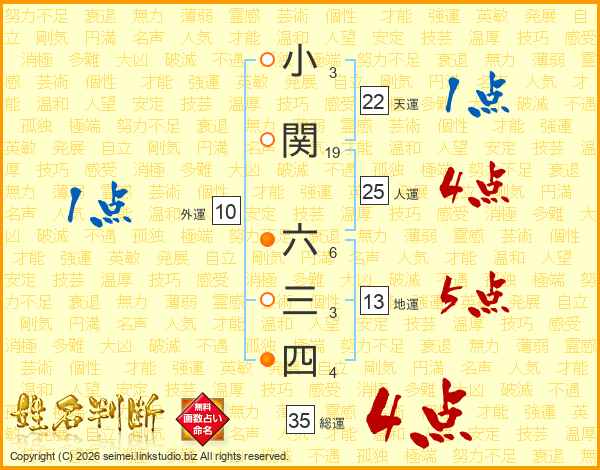 小関六三四さんの人運は25画の4点!