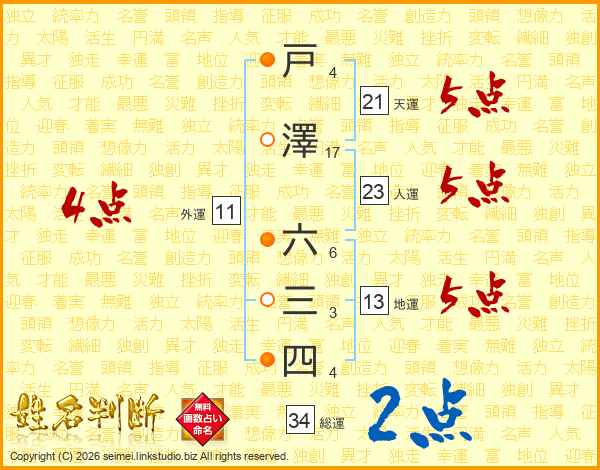 戸(4画)澤(17画) 六(6画)三(3画)四(4画)