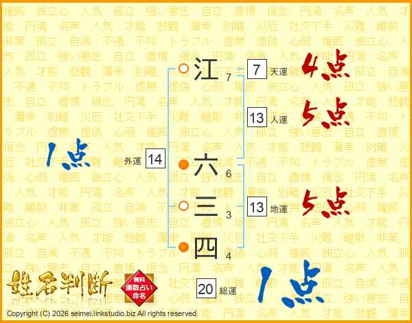 江六三四さんの総運は20画の1点!