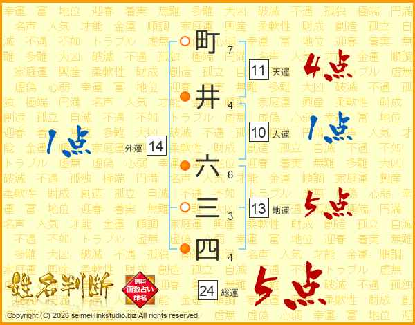 町井六三四さんの総運は24画の5点!