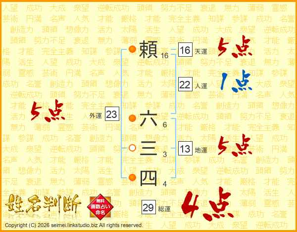 頼六三四さんの天運は16画の5点!