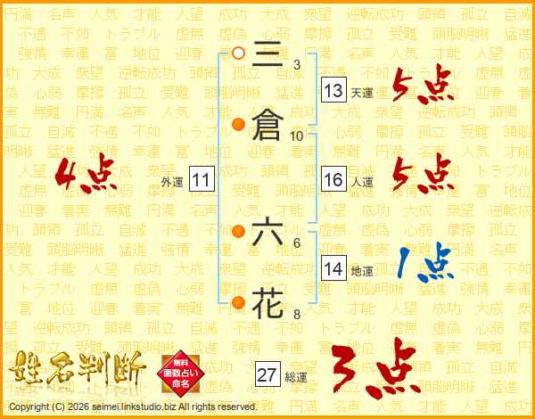 三倉六花さんの総運は27画の3点!