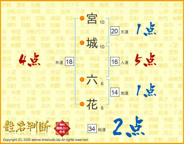 宮城六花さんの外運は18画の4点!