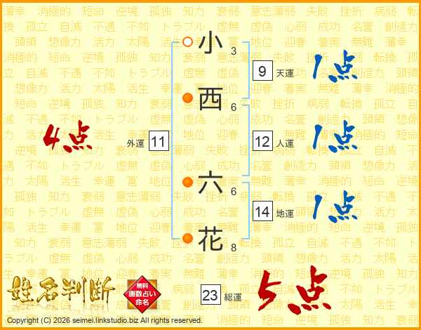 小西六花さんの総運は23画の5点!
