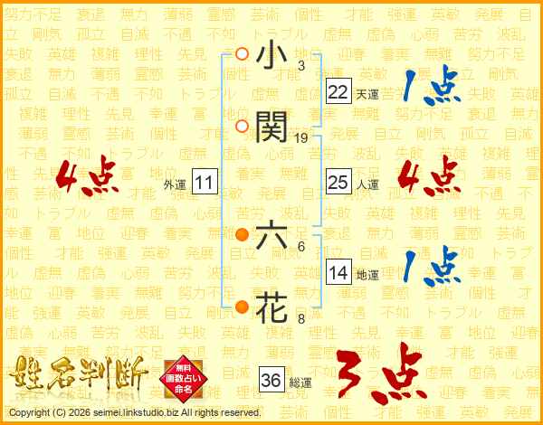 小関六花さんの天運は22画の1点!
