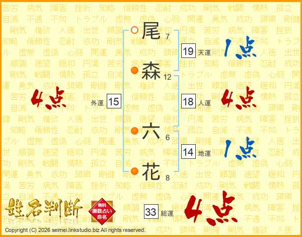 尾森六花さんの総運は33画の4点!