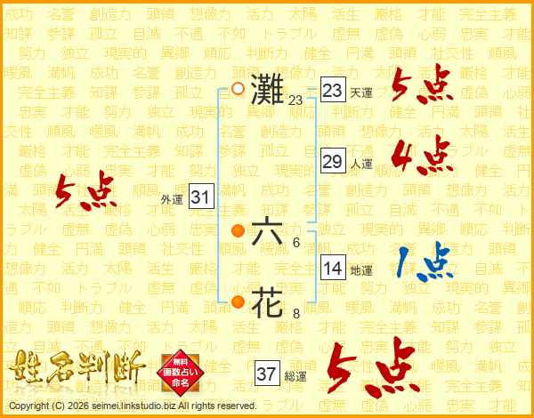 灘六花さんの総運は37画の5点!