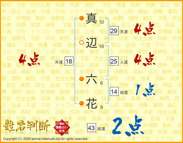 真辺六花さんの総運は43画の2点!