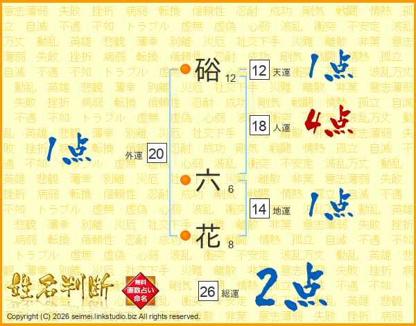 硲六花さんの総運は26画の2点!