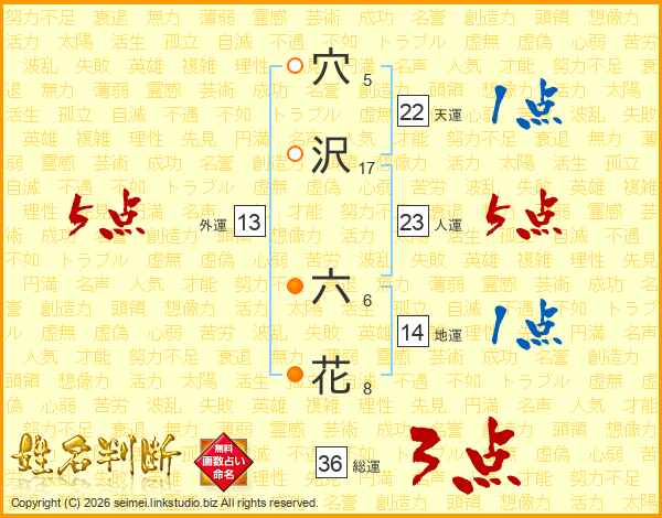 穴沢六花さんの外運は13画の5点!