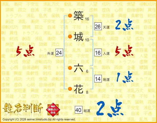 築(16画)城(10画) 六(6画)花(8画)