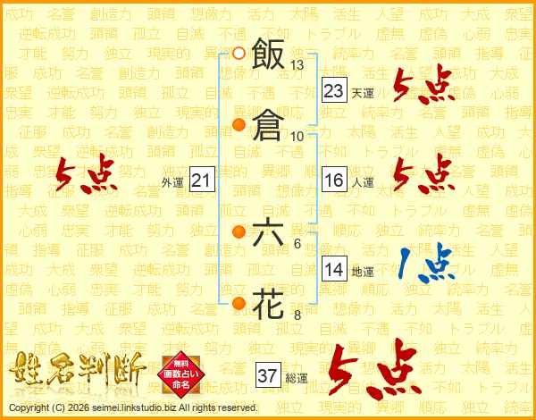 飯倉六花さんの外運は21画の5点!