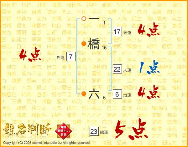 一橋六さんの天運は17画の4点!