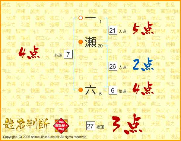 一瀬六さんの人運は26画の2点!