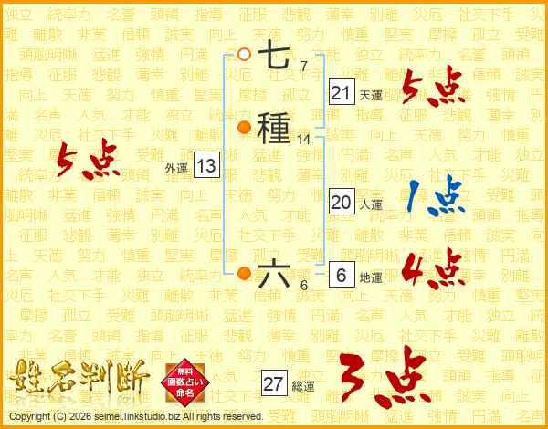 七種六さんの総運は27画の3点!