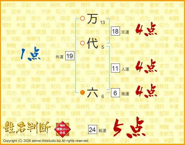 万代六さんの総運は24画の5点!