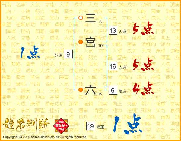 三宮六さんの総運は19画の1点!