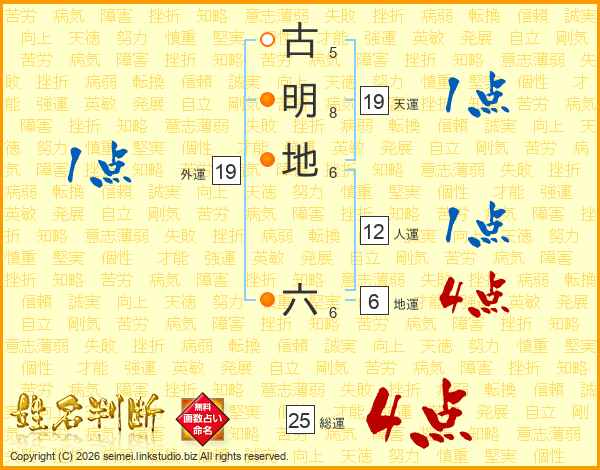 古明地六さんの総運は25画の4点!