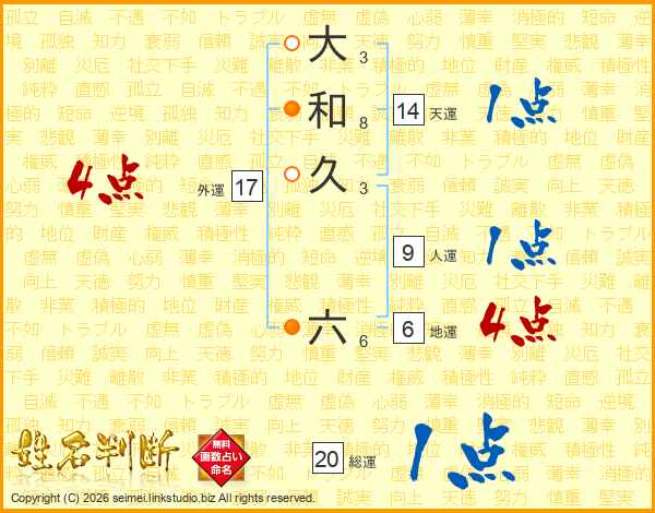 大和久六さんの天運は14画の1点!