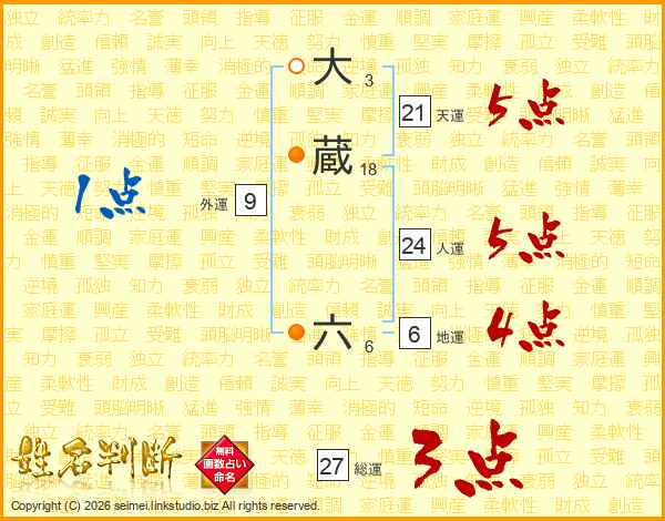 大蔵六さんの人運は24画の5点!