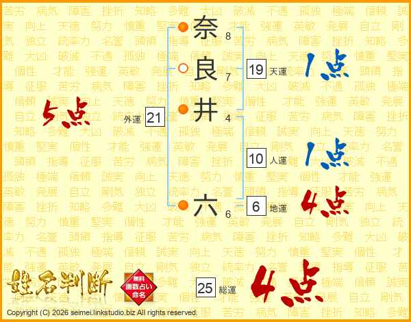 奈良井六さんの総運は25画の4点!