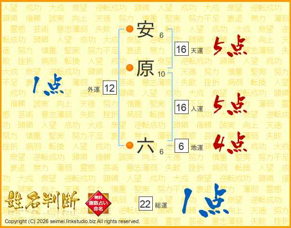 安原六さんの総運は22画の1点!