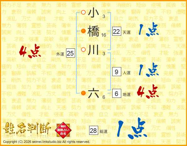 小橋川六さんの総運は28画の1点!
