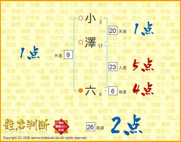 小澤六さんの総運は26画の2点!