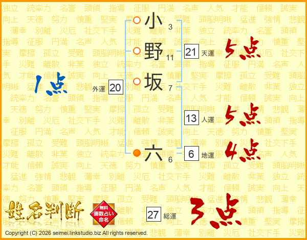 小野坂六さんの総運は27画の3点!