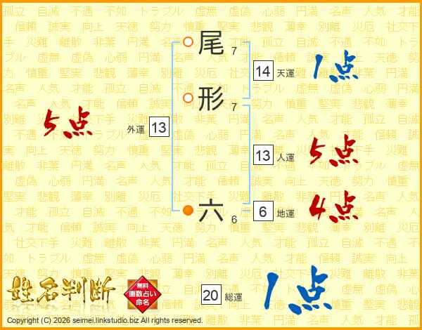 尾形六さんの総運は20画の1点!