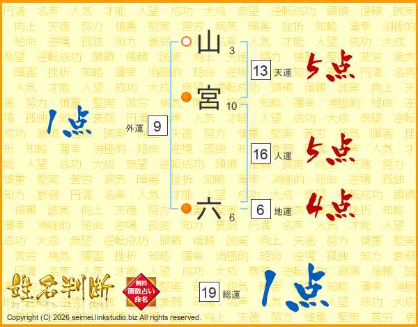 山宮六さんの総運は19画の1点!
