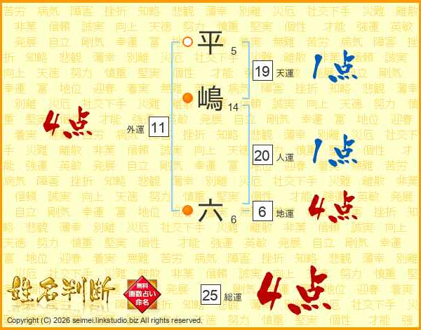 平嶋六さんの総運は25画の4点!