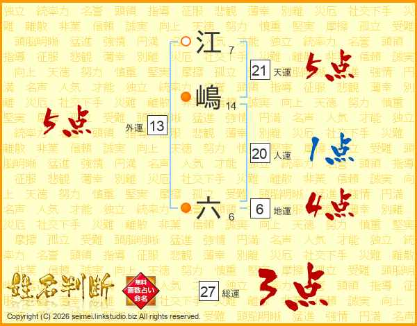 江嶋六さんの総運は27画の3点!