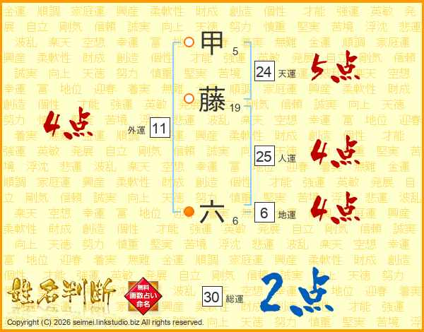 甲藤六さんの人運は25画の4点!