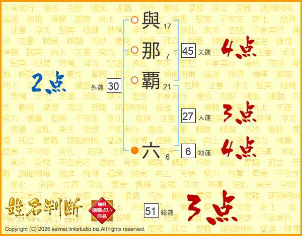 與那覇六さんの天運は45画の4点!