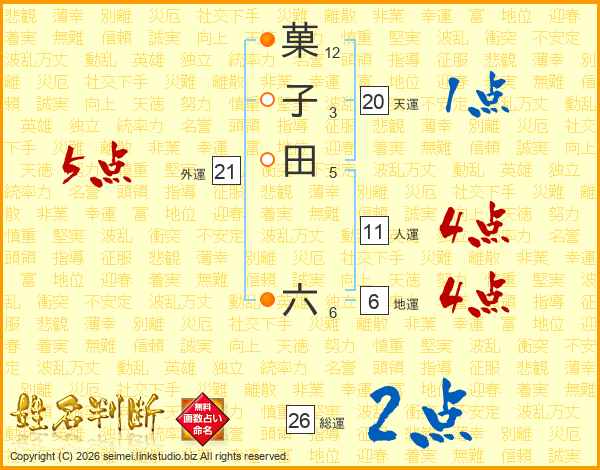 菓子田六さんの総運は26画の2点!