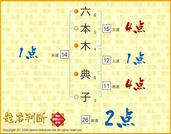 六本木典子さんの総運は26画の2点!