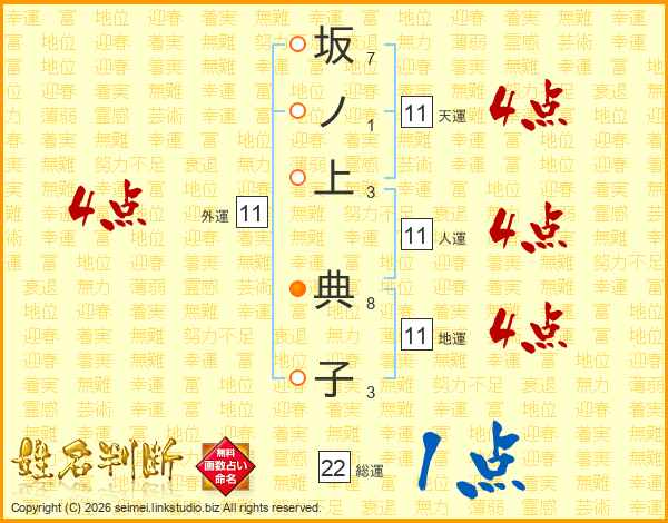 坂ノ上典子さんの天運は11画の4点!