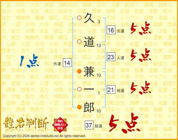 久道兼一郎さんの総運は37画の5点!