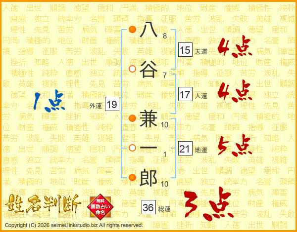 八谷兼一郎さんの総運は36画の3点!