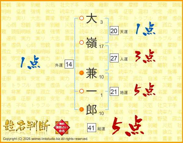 大嶺兼一郎さんの総運は41画の5点!